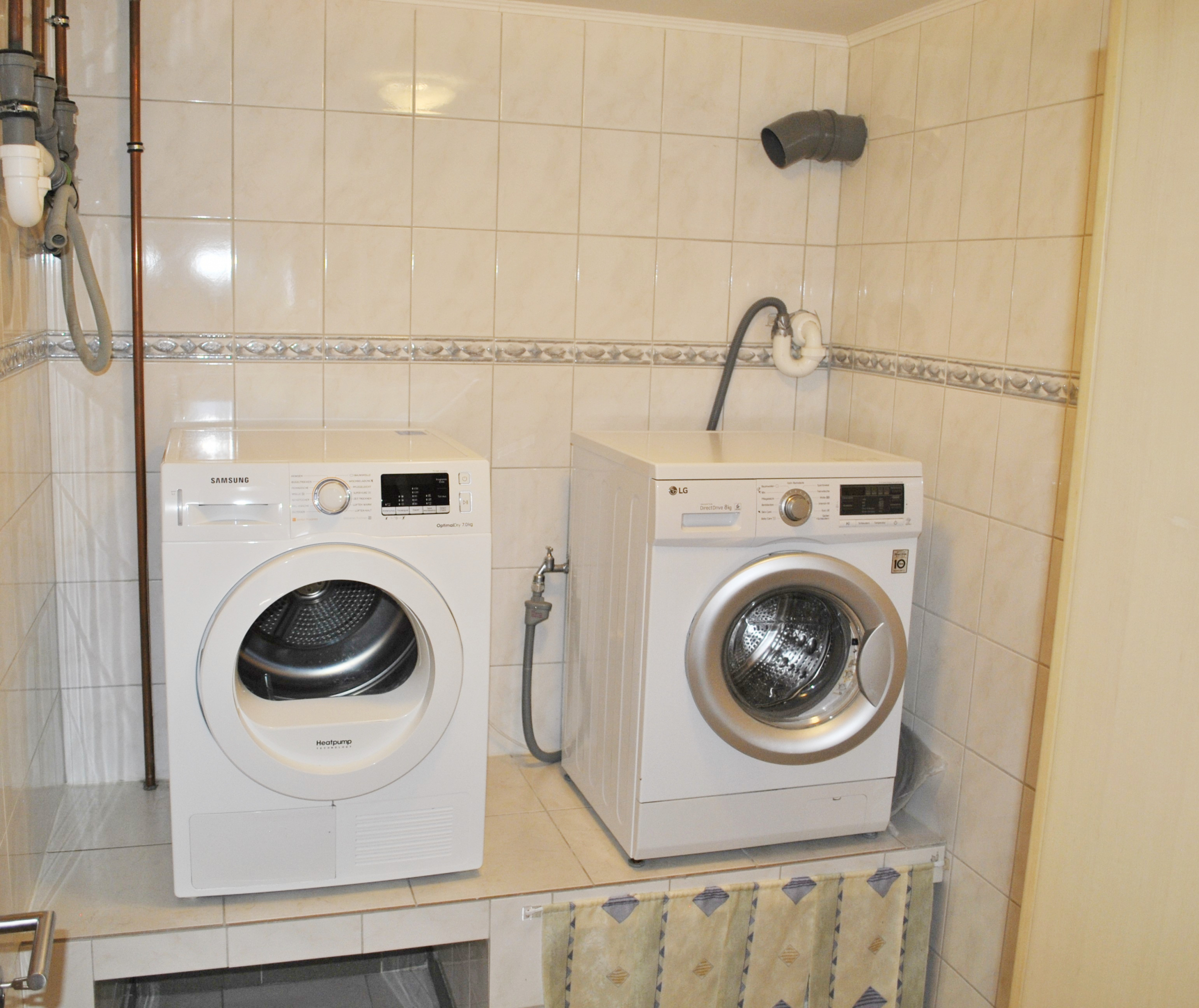 gibt es einen Platz für Waschmaschine und Trockner, sodass eine