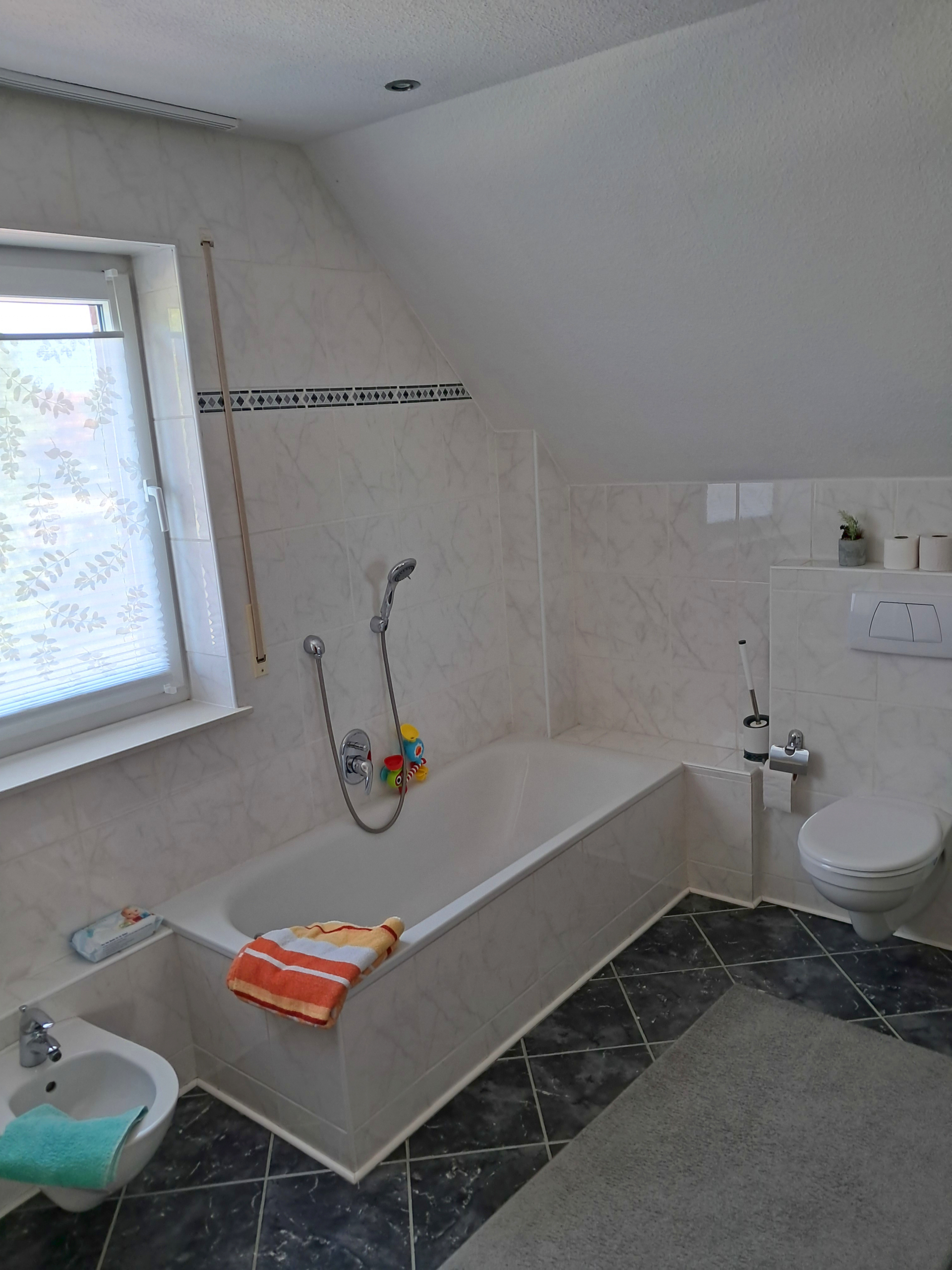 Badezimmer bietet Ihnen Komfort pur mit Dusche, Badewanne und