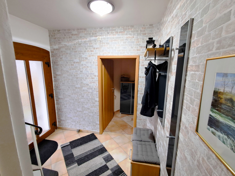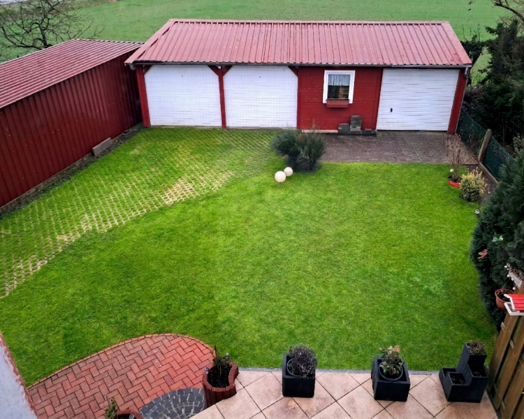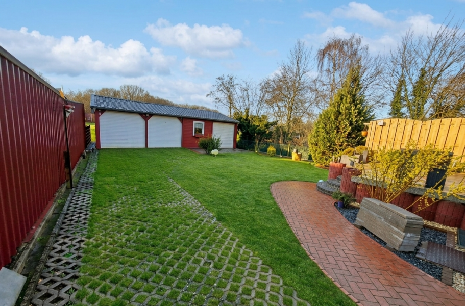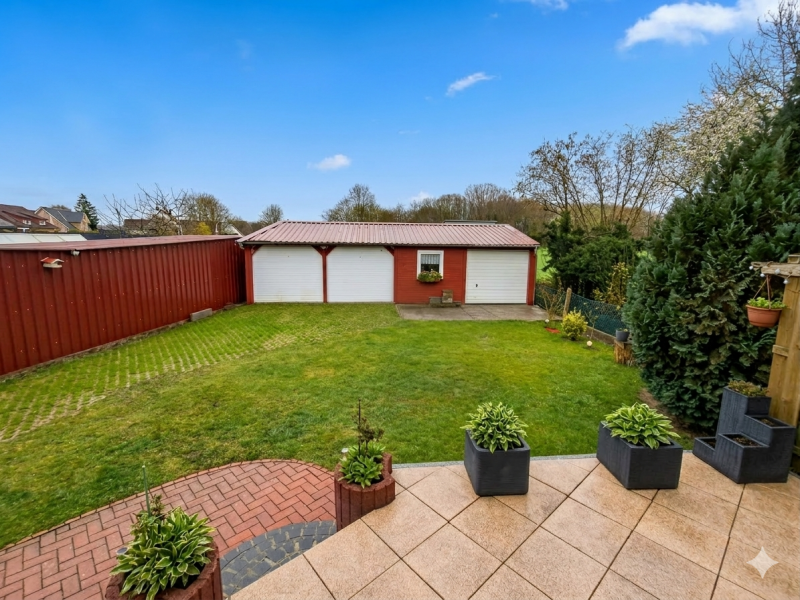 Abgerundet wird die Immobilie durch eine großzügige Garage für zwei Autos sowie eine angrenzende Werkstatt, die zusätzlichen Platz für Hobby, Handwerk oder weitere Aufbewahrungsmöglichkeiten bietet.