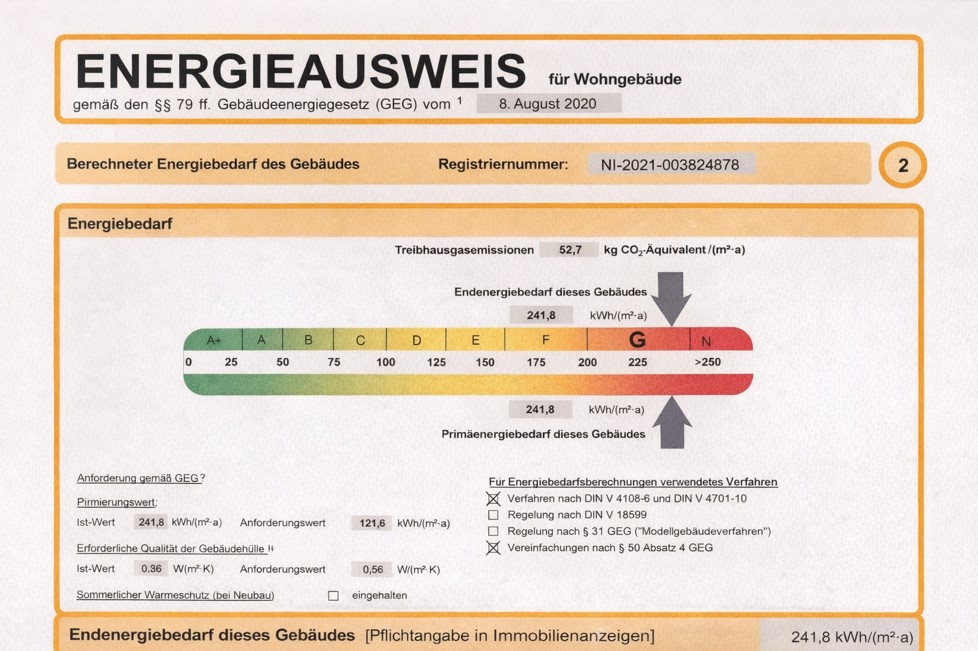 Energiekennwert: Klasse G 241,8 kWh/(m²·a)