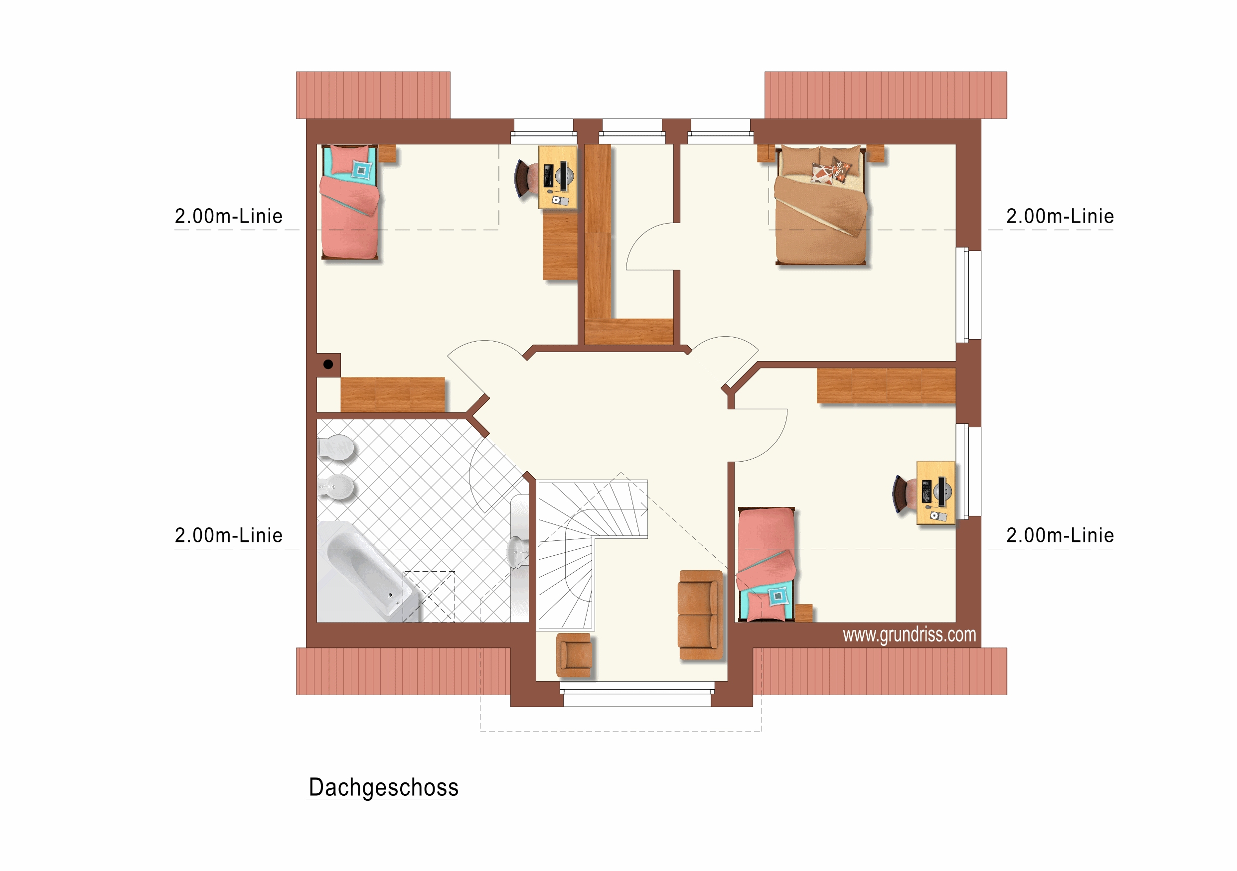 Im Obergeschoss erwarten Sie drei großzügig geschnittene