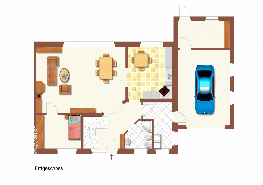 – Große Garage (Direktzugang zum Haus)
