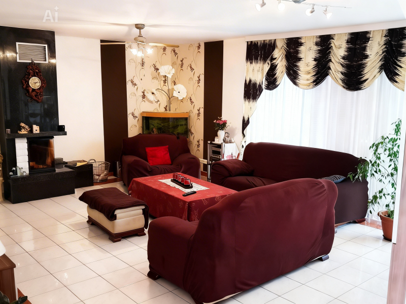 Ausstattung – Kamin – Fußbodenheizung – Begehbarer Kleiderschrank – Fenster doppelverglast – Elektrische Rollläden – Dachterrasse – Große Garage (Direktzugang zum Haus)